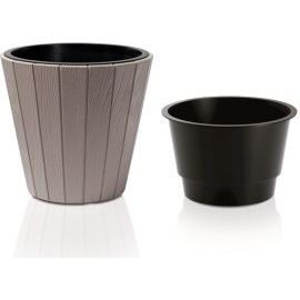 Atmosféra a komfort, funkčnost a design - to vše spojuje mrazuvzdorná kolekce Woode. Dokonale se hodí na terasy, do zimních zahrad nebo na verandy. Květináče Woode jsou odolné vůči slunečnímu záření, nízkým teplotám a mechanickým poškozením. Parametry: - Průměr: 488 mm - Výška: 457 mm - Objem květináče: 54 l - Objem vložky: 40 l - Materiál: plast - provedení: imitace dřeva - Barva: šedý kámen Ilustrační foto.