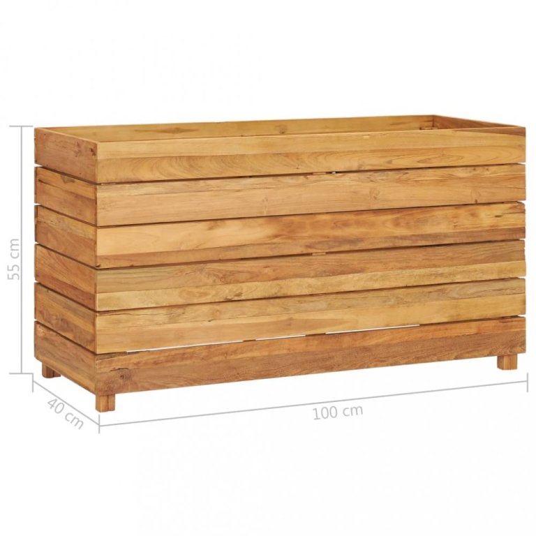 Do tohoto truhlíku zasadíte velké množství květin nebo zeleniny a zároveň si vytvoříte stylový dekorativní prvek pro váš obývací pokoj, zahradu, balkon nebo terasu. Truhlík je vyrobený z recyklovaného teaku, je tudíž velmi robustní a má dlouhou životnost. Krásná kresba dřeva je vždy jedinečná, a proto je i každý truhlík originální kus, lehce odlišný od všech ostatních. Čtyři dřevěné nohy zlepšují jeho stabilitu. Dno truhlíku je dále vybavené ocelovou podložkou, na kterou položíte své květináče. Sestavení tohoto produktu je snadné. Důležité upozornění: Barvy se mohou lišit kus od kusu, každý kus nábytku je tudíž unikátní. Výběr kusu k dodání je náhodný. Truhlík z recyklovaného teakového dřeva nabízíme i v jiných rozměrech. Barva: hnědáMateriál: recyklovaný teak / ocelRozměry: 50 x 40 x 38 cm / 7,6 kg100 x 40 x 38 cm / 11,5 kg150 x 40 x 38 cm / 14,8 kg50 x 40 x 55 cm / 10,5 kg100 x 40 x 55 cm / 15,8 kg150 x 40 x 55 cm / 25 kg50 x 40 x 72 cm / 14,1 kg100 x 40 x 72 cm / 21,8 kg150 x 40 x 72 cm / 31 kgvýška podložky od země: 10 cm.