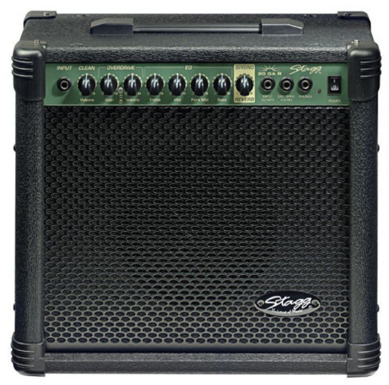 Kombo pro elektrickou kytaru, 20W, 8" reproduktor, 6.35mm linkový vstup, dva kanály - Clean s ovládáním hlasitosti a Overdrive s přepínáním a ovládáním úrovně a hlasitosti, 6.35mm vstup pro CD/MP3, sluchátkový výstup 6.35mm, výstup pro externí reproduktory Kvalitní kytarové kombo je součástí výbavy každého muzikanta. Jedná se o tzv. modelingové kombo od výrobce Stagg, jež slouží pro velmi kreativní práci se zvukem. Jako tranzistorový typ ho počítáme ke konstrukčně jednodušším typům s vyšší spolehlivostí a jeho zvuk potěší velmi příjemnou čistotou. Přepínat na něm můžete mezi 2 kanály. Výkon komba Stagg 20 GA DR činí 20 W. Dokáže také regulovat zkreslení. Disponuje těmito mírami 415 × 375 × 210 mm. Základní přednosti komba Stagg 20 GA DR Tranzistorové kombo vás potěší čistým zvukem a spolehlivostí Modelingový typ s mnoha možnostmi práce se zvukem Chlubí se celkovým výkonem 20 W Počet kanálů komba Stagg: 2 Dává možnost nastavit intenzitu zkreslení Pro připojení se.