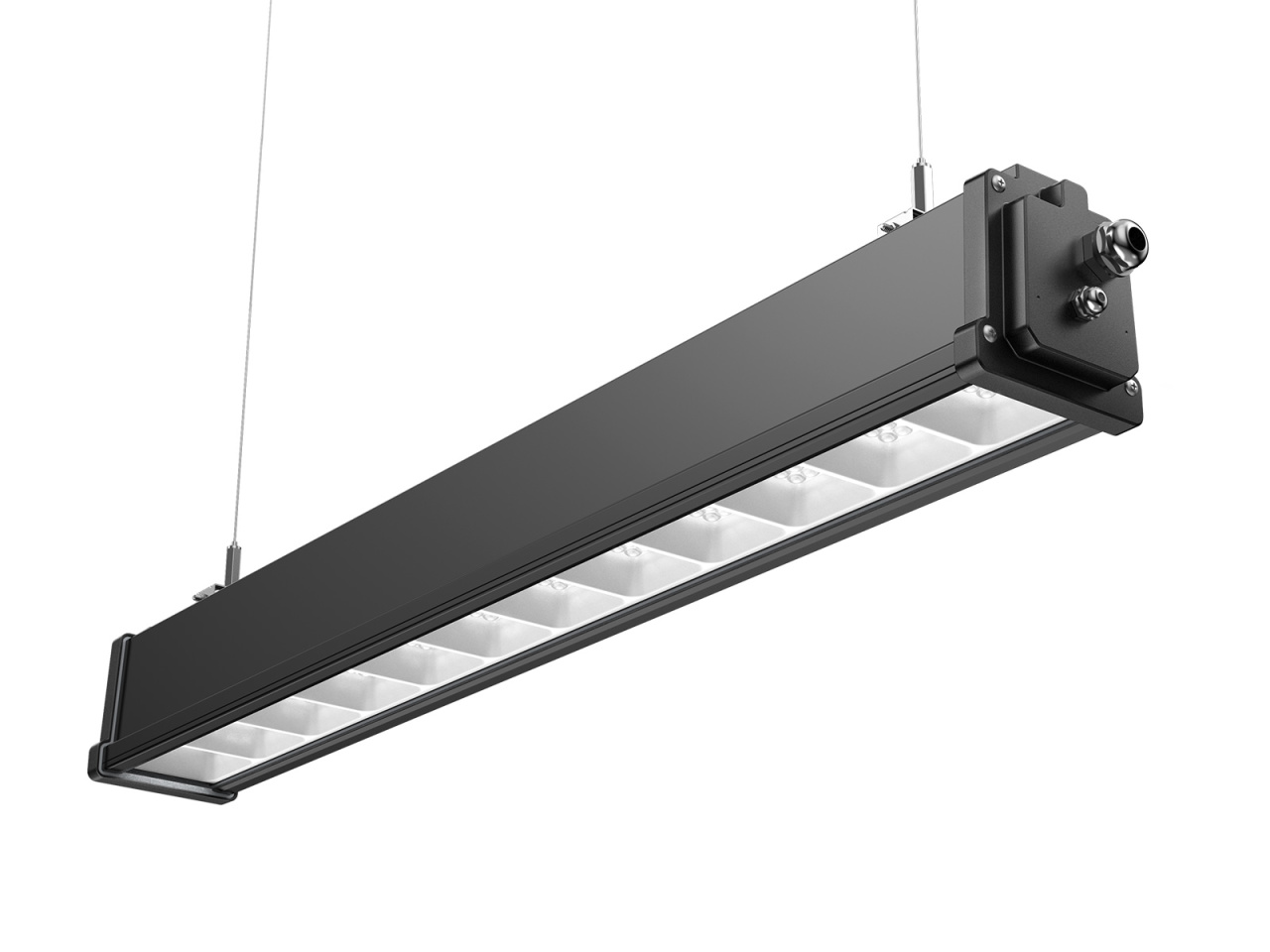 Robustní LED lineární průmyslové svítidlo s nízkým oslněním UGR20 a krytím IP65, výkon 100W. Vysoká světelná účinnost až 140 lm/W. Světelný tok 14000 lm. Barvu světla lze zvolit mezi 3000K, 4000K nebo 5000K. Záruka 5 let. Životnost světelného zdroje L70: 130.000 hodin. Svítidlo určeno pro osvětlení průmyslových a výrobních a skladových prostor, zejména je vhodné pro osvětlení skladových uliček. Použité LED čipy SMD Lumileds, napájecí zdroj Moso, možnost stmívání (0-10V, DALI). Svítidla lze dodat také jako vzájemně propojitelná. Úhel světla lze volit 15°, 30°, 60° a 90°. Teplota prostředí: -30°C – +50°C.