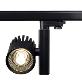 Lištový - kolejnicový LED reflektor s COB čipem. Jednofázový adaptér. Barva svítidla černá. Výkon 30W, světelný tok 3000 lm. Barva světla 3000K, 4000K nebo 6000K, úhel světla 15°, 24°, 38° nebo 60°. Index podání barev je Ra>80. Záruka 2 roky.