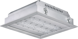 Robustní LED svítidlo do podhledů čerpacích stanic nad stojany s vysokým krytím IP66, výkon 100W. Vysoká světelná účinnost až 140 lm/W. Světelný tok 13000 lm. Záruka 5 let, za příplatek možná záruka až 7 let. Životnost světelného zdroje L70: 100.000 hodin. Svítidlo určeno pro osvětlení průmyslových a výrobních prostor. Použité LED čipy Philips Luxeon, napájecí zdroj Meanwell. Úhel světla lze volit 60°, 90°, 110°. Teplota prostředí: -40°C – +70°C.