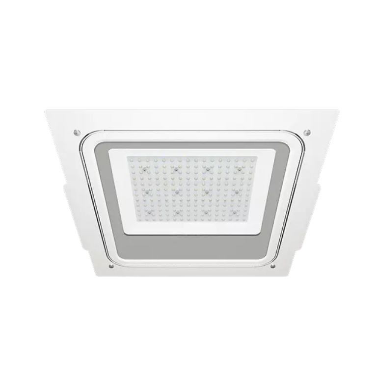 Špičkové LED svítidlo do podhledů čerpacích stanic nad stojany s vysokým krytím IP66, výkon 100W. Vestavná instalace do podhledu. Vysoká světelná účinnost až 165 lm/W. Světelný tok 16000 lm. Záruka 5 let. Životnost světelného zdroje L70: 100.000 hodin. Svítidlo určeno pro osvětlení čerpacích stanic, venkovní osvětlení, osvětlení sportovišť, obchodů, průmyslových a výrobních prostor. Použité LED čipy Philips Luxeon, napájecí zdroj Inventronics. Úhel světla lze volit 60°, 90°, 120°. Teplota prostředí: -40°C – +50°C.