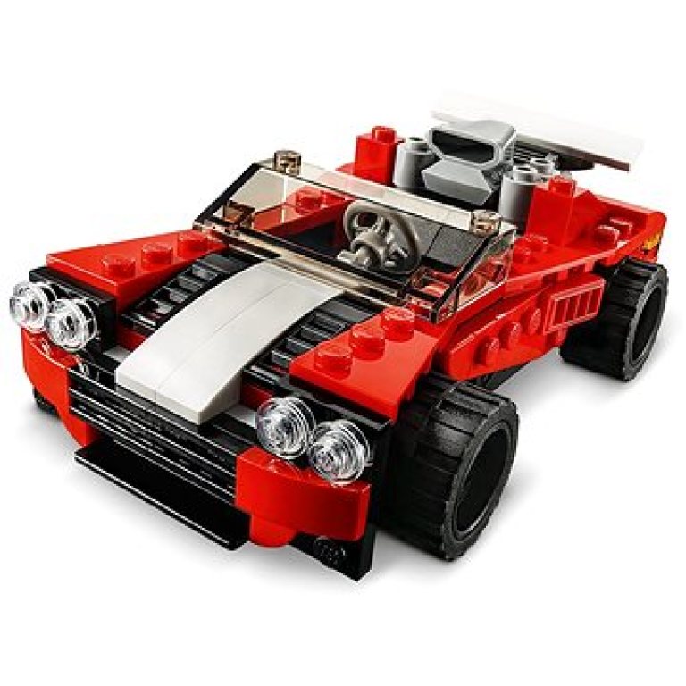 Probuďte v dětech kreativitu a lásku k vozidlům prostřednictvím vzrušující stavebnice LEGO® Creator 3 v 1 Sporťák (31100). Děti si s tímto červeno-černým sporťákem vybaveným motorem, sáním a zadním přítlačným křídlem užijí pořádnou porci závodění. Zábava a tvůrčí svoboda Tato sada od LEGO Creator 3 v 1 nabízí 3 různé stavitelské a herní zážitky. Děti si mohou postavit model sporťáku, přestavět ho na extrémní závoďák s motorem a sáním nebo sestavit klasické letadlo. Samozřejmě vždycky je tady možnost postavit si něco úplně jiného a nového. Tato parádní stavebnice podněcuje ke kreativnímu hraní a představuje skvělý dárek nebo odměnu. Do kabiny obou modelů aut je možné usadit minifigurku. Modely pro spoustu stavění, hraní a přestavování Stavebnice LEGO Creator 3 v 1 dávají dětem příležitost stavět detailně propracované modely a nápaditě si s nimi hrát. Modely nabízejí nekonečné stavitelské a herní možnosti a zároveň probouzejí kreativitu v dětech všech věkových kategorií. Tyto malé a inspirativní stavebnice představují skvělý dárek pro jakoukoliv příležitost.. Roztočte kola kreativní zábavy s touto vzrušující stavebnicí se třemi modely v jednom: sporťák, závoďák a klasické letadlo. Jde o skvělý dárek pro děti. Stavění a přestavování modelů přináší nekonečné herní možnosti!. Jaká zábava na vás čeká za volantem? Děti mohou rozvíjet svou představivost a kreativní schopnosti a brázdit ulice ve sportovním voze, překonat rychlostní rekord v extrémním závoďáku nebo se proletět v klasickém letadle. Pak je tady ještě možnost postavit si cokoliv je napadne.. Tato stavebnice, stejně jako každá jiná sada řady LEGO® Creator 3 v 1, poskytuje dětem možnost postavit si 3 různé modely: sporťák, závoďák nebo klasické letadlo. Se stavebnicí je možné si hrát samostatně nebo modely spojit a kombinovat s dalšími LEGO® sadami pro ještě větší množství stavitelských možností.. Skvělá stavebnice, kterou si zamiluje každý fanoušek kreativního stavění. Sportovní vůz se sáním a přítlačným křídlem, extrémní závoďák nebo zábavný model letadla představují skvělý dárek pro kluky a holky od 6 let k jakékoliv příležitosti.. Detailní zpracování a spousta akce. Sporťák měří přes 4 cm na výšku, 12 cm na délku a 7 cm na šířku, takže je dostatečně kompaktní na to, aby si ho děti mohly vzít kamkoliv s sebou, a zároveň dost velký, aby se do něj vešla minifigurka (není součástí sady).. Hodiny nekonečné zábavy poháněné dětskou představivostí! Hračky bez baterií dětem pomáhají zdokonalovat se v nezávislém hraní i v řešení problémů, a navíc jim dávají možnost neustále přicházet s novými vlastními příběhy.. Díky jednoduchým návodům si děti s modely poradí raz dva a téměř okamžitě se mohou těšit ze svých výtvorů a užívat si nekonečnou porci kreativní zábavy. Popadněte stavebnici s celkem 3 modely a otevřete svět stavění a přestavování.. Dejte dětem možnost rozvíjet jejich stavitelské dovednosti při hraní se stavebnicemi LEGO® Creator 3 v 1. Tato parádní sada s vozidly dětem umožňuje rozvíjet kreativitu a představivost díky spoustě stavitelských možností.. Již od roku 1958 splňují LEGO® kostky ty nejvyšší standardy, aby byly konzistentní, kompatibilní a umožňovaly snadné skládání a rozebírání.