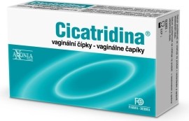 Vaginálne čapíky s obsahom kyseliny hyaluronovej vhodné ako pomocná liečba pri reparačných procesoch za stavov atrofickej a dystrofickej pošvovej sliznice. Pomáha hojeniu po pôrode, gynekologickej chirurgii, v prípadoch dystrofie po chemoterapii, ionizujúcom žiarení, vaginálnej suchosti i z dôvodu nedostatku estrogénu. Početné klinické štúdie preukázali schopnosť kyseliny hyalurónovej urýchliť a zlepšiť proces reepitelizácie a obnovy tkanív.CICATRIDINA vaginálne čapíky sa používajú na:.úľava od dyskomfortu v pošve po preliečení vaginálneho zápalu či.vaginálnej mykózy.urýchlenie hojenia vaginálnych poranení po pôrode.úľava od príznakov vaginálnej atrofie (bolestivý pohlavný styk, vaginálna.suchosť, svrbenie) po menopauze, po ožarovaní v panvovej oblasti,.pri chemoterapii a pri hormonálnej liečbe nádorov citlivých na estrogény.(napr. karcinóm prsníka).urýchlenie hojenia rany (krátera) na krčku maternice po konizácii.urýchlenie hojenia a zníženie krvácania pri liečbe zápalu krčka maternice.(cervicitída).urýchlenie hojenia vaginálnych poranení po vaginálnej chirurgii.urýchlenie hojenia vaginálnych lézií po ožarovaní (rádioterapii, brachyterapii).v oblasti panvy.Použitie:.Štandardne sa používa jeden čapík denne (večer) alebo podľa lekárskeho predpisu. Dĺžka používania závisí od vývoja príznakov; v prípade potreby sa vaginálne čapíky Cicatridina® môžu používať dlhodobo.1. Vyberte čapík ťahom za dve krídelká blistra a zaveďte ho hlboko do pošvy.2. Z hygienického hľadiska je správne umyť si ruky pred a po použití zdravotníckej pomôcky.Na odstránenie zbytkov čapíkov či iných prípravkov podávaných do pošvy sa odporúča raz týždenne výplach pošvy prípravkom AFLOVAG®.Dávkovanie podľa indikácie:.Po pôrode, po konizácii, po rádioterapii, po vaginálnej chirurgii:.1 čapík denne (večer) 10-20 dní podľa rozsahu poškodenia.Po preliečení vaginálnej mykózy/infekcie:.1 čapík denne (večer) 10-20 dní po liečbe.antimykotikami/antiseptikami/antibiotikami.Vaginálna suchosť po menopauze, počas dojčenia, počas požívania.nízkodávkovanej antikoncepcie, pri liečbe LHRH analógmi a antiestrogénmi,.dyspareunia: 1 čapík denne (večer) 10-20 dní, následne 1 čapík 2-3-krát.týždenne kontinuálne.Zloženie (Cicatridina Axonia): Sodná soľ kyseliny hyalurónovej: 5 mg, olejový výťažok z pupočníka ázijského, olejový výťažok z nechtíka lekárskeho, olejový výťažok z aloy pravej, esenciálny olej z čajovníka austrálskeho, polosyntetické glyceridy, BHT.