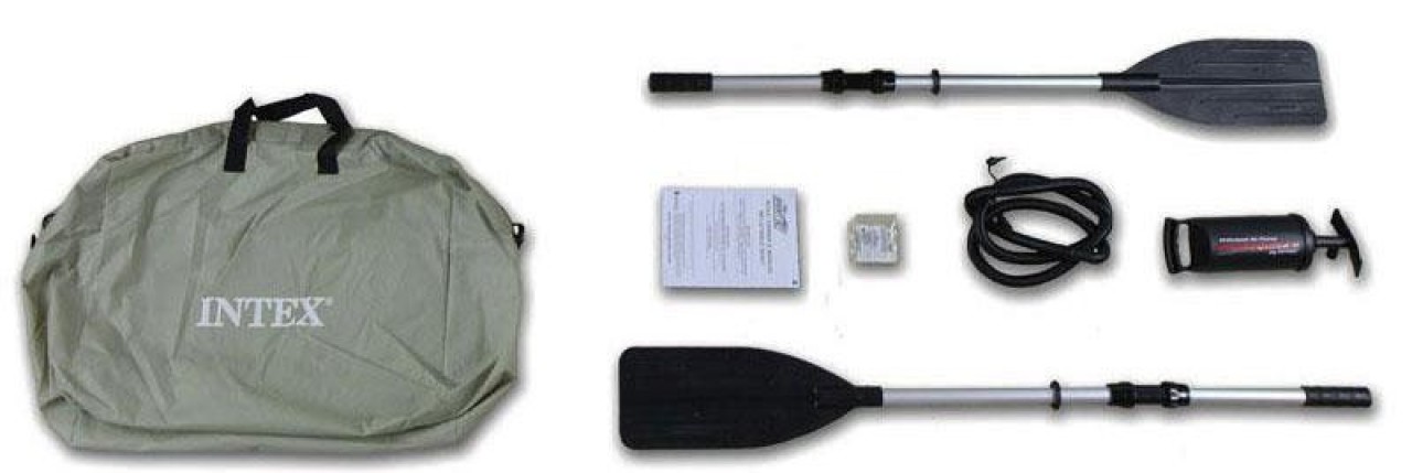 Intex Excursion 4 Boat Set je sada obsahující kvalitní člun, dvě pádla a ruční pumpu. Má dvě nafukovací sedátka s opěradly pro větší pohodlí a maximální nosnost 500 kg. Nafukovací člun Intex Excursion 4 Boat Set se stane zábavným doplňkem na výlet nebo dovolenou. Set obsahuje kromě člunu ještě dvě vesla a ruční pumpu. Člun má tři vzduchové komory. Jednu tvoří dno člunu, druhou vnitřní obvod člunu a třetí vnější obvod. Pokud by došlo k nehodě, je vnitřní komora zkonstruována tak, aby udržela člun nad hladinou i kdyby zůstala nafouknutá pouze ona. Hlavní vzduchová komora je osazena dvěma ventily Boston, které umožňují rychlé nafouknutí i vyfouknutí. Člun je vyroben z kvalitního vinylu a pro snadnou manipulaci má záchytné lano po celém obvodu a madlo na špičce i zádi.Na bocích má potom plastové výlisky pro uchycení vesel při jejich používání a také držáky pro chvíle, kdy je používat nechcete. Dále je na každém boku jeden držák na rybářský prut. Na zádi se nachází oka pro připevnění držáku motoru a uvnitř člunu je kapsa pro odkládání věcí. Pro větší pohodlí jsou ve člunu dvě pohodlná nafukovací sedátka s opěradly. Výrobek má maximální nosnost 500 kg a obstál v testech společnosti TÜV Rheinland. Součástí balení je i opravná záplata pro drobná poškození.Vlastnosti setu Excursion 4 Boat Set:.člun, dvě vesla a ruční pumpa.délka vesla 137 cm.tři vzduchové komory.snadné nafukovaní a vyfukovaní.hlavní komora má ventily Boston.součástí balení opravná sada.maximální nosnost 500 kg.rozměry 315 x 165 x 43 cm.materiál robustní vinyl (0,75 mm).záchytné lano po celém obvodu člunu.madlo na špičce a zádi.výlisky pro snadnější veslování.držáky na vesla.dva držáky na rybářské pruty.oka na připevnění držáku motoru.dvě nafukovací sedátka s opěradly.kapsička.