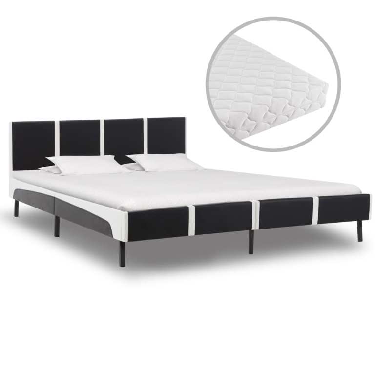 vidaXL Posteľ s matracom, čierno biela, umelá koža 160x200 cm