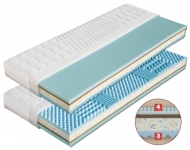 Kvalitní oboustranná matrace tvořena perforovaným jádrem ze studené pěny dvou tvrdostí s vloženými válci ze studených pěn různých tuhostí. Nosné vrstvy tvoří speciálně profilovaná masážní vrstva s panáčky, která zabezpečuje dokonalé prokrvení pokožky a uvolňuje svaly v průběhu spánku. Druhou nosnou vrstvu ...