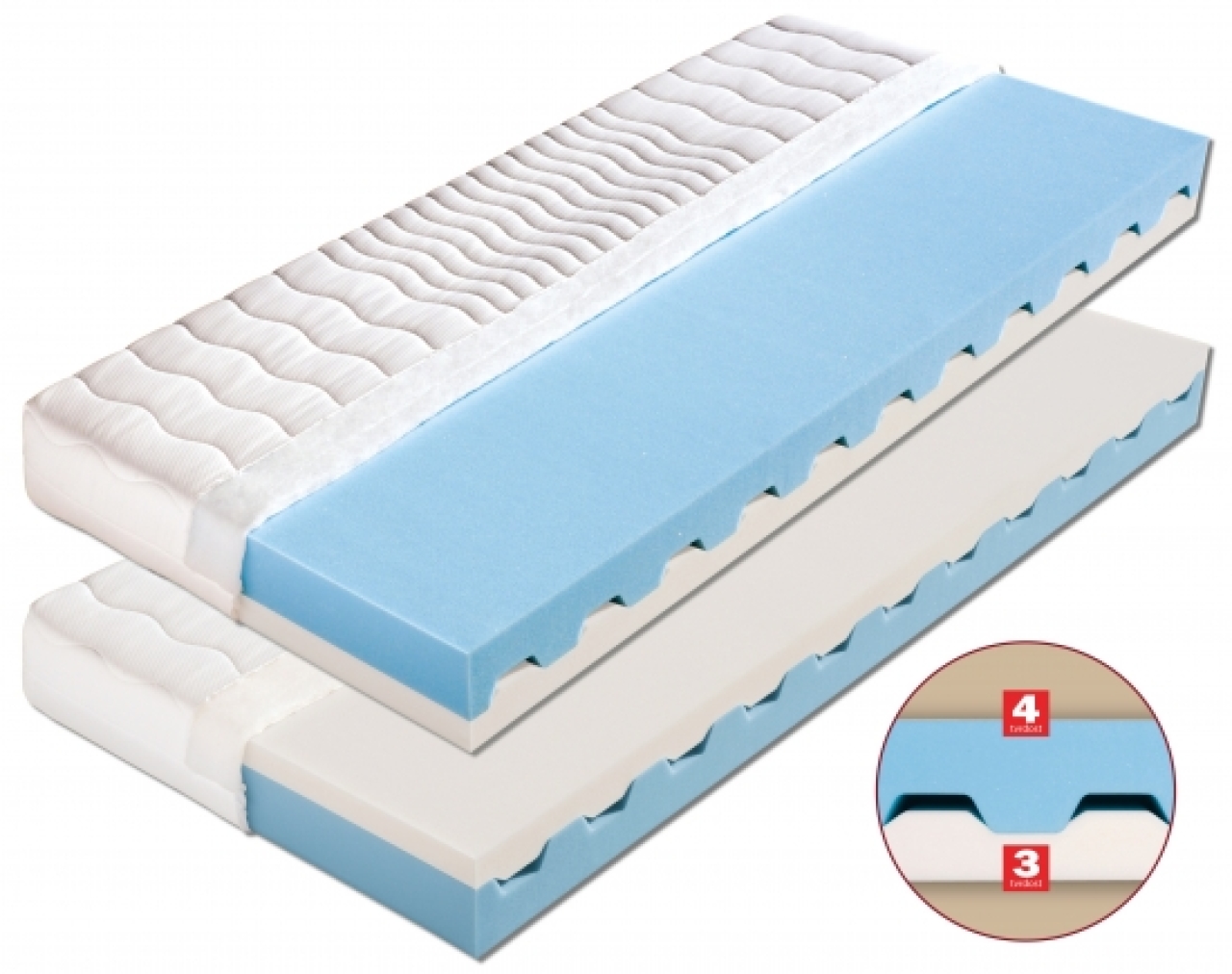 Matrace složená ze dvou elastických pěn odlišných objemových hmotností nabízí volbu dvojí tvrdosti. Střed jádra matrace je provzdušněn příčnými průduchy, které zaručují změkčení matrace v exponovaných místech. Samotný průřez matrace umožňuje spojení materiálů bez použití lepidla. Vhodná pro děti a mládež. Matraci lze uložit jak na pevný, tak i na polohovací lamelový rošt. Celková výška matrace cca 17 cm  (včetně potahu) Nosnost: do 100 kgTvrdost:  tvrdá  (3), velmi tvrdá (4)Klinicky testováno Potah matrace je snímatelný Matrace se vyrábí v rozměrech: 80x195, 85x195, 80x200, 90x200, 140x200, 160x200 a 180x200 cm. Výběr potahů matrace:Úplet:Vyšší stupeň kvality v porovnání s froté potahem. Povrch je hladší a silnější. Je prošitý dutým vláknem s vyšší gramáží. Tímto způsobem dosáhneme lepší izolace od jádra matrace. Tento potah je prošitý třízónovým způsobem (střed - hustší prošití).Aloe Vera:Kvalitní potah, který obsahuje výtažek známé rostliny Aloe Vera Barbaensis z rodu liliovitých. Má pozitivní vliv na pokožku lidského těla, působí antibakteriálně. Postupně se uvolňující extrakt z AloeVera umožňuje dokonalou relaxaci ve spánku. Potah, prošitý třízónovým způsobem, je příjemný na dotek a standartně vetkané logo zaručuje nezaměnitelnost výrobkuSilverGuard:SilverGuard je jedinečná technologie, která zaručuje trvalou svěžest a hygienu během spánku. Eliminuje bakterie způsobující zápach a chrání před jejich usazováním. Ochrana je trvalá i po častém praní a čištění. Při kontaktu s pokožkou zachovává její přirozenou rovnováhu. Tento potah obsahuje přírodní viskózové vlákno, které ve spojení s moderním designem dodává textilii luxusní charakter. Zaručuje vám absolutní čistotu a pohodlí. SilverGuard® úprava: Využívá stříbro jako jeden z nejstarších a nejznámějších způsobů ochrany před houbami a bakteriemi. Díky působení stříbrných iontů chrání textilii před mikroorganismy a zabraňuje jejich rozvoji přírodní cestou. SilverGuard® zajišťuje konstantní svěžest a hygienu lůžka, vysokou odolnost proti oděru a žmolkování. Potah je pratelný na 60°C. Složení potahu: 35% VISKÓZA, 2% POLYAMID, 63% POLYESTER.Medicott:Značkový typ pleteného potahu svým speciálním složením zabraňuje tvorbě a usazování domácích roztočů a tvorbu plísní má vynikající antibakteriální účinky, které jsou dosaženy bez přídavku chemických látek. Tajemství úspěšného fungování spočívá v odstranění nečistot z vláken přírodní bavlny, čímž se zamezí potencionálnímu domovu plísní. Medicott má dlouhotrvající účinek při pravidelné údržbě. Potah je možno prát při 60° C.Lyocell:Materiál z čistého přírodního vlákna získaného ze dřeva technologií šetřící životní prostředí.Se všemi svými vynikajícími charakteristikami Vám poskytuje během spánku optimální pohodlí. K jejím předním vlastnostem patří vysoká absorpční schopnost a velmi rychlé odpařování. Tyto vlastnosti zaručují dokonalý pocit i pro osoby s vyšší potivostí. Mikrovlákna Lenzing Lyocell dodávají látce hedvábný lesk a jsou odolná a necitlivá k mikroorganismům. Potah je možno prát při 60° C.