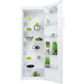 Jednodvéřová monoklimatická chladnička je vybavena šesti skleněnými policemi, které vytváří čistý a jednoduchý design. Svojí energetickou třídou A++ se řadí mezi nejúspornější. Chladnička disponuje využitelným objemem 335 l. Vlastnosti: Energetická třída A++ Čistý objem chladničky 335 l Spotřeba energie 0,29 kWh/24 h Spotřeba energie 106 kWh/rok Možnost otočení dveří Technické specifikace: Vlastnosti Klimatická třída:N-ST Energetická třída:A++ Objem Celkem/CH/M:335 Objem chladničky hrubý/čistý: Objem mrazničky hrubý/čistý: Spotřeba el. Energie kWh/24h:0,29 Roční spotřeba el. Energie kWh:106 Hlučnost:42 Chladivo:R600a Termostat: Zmrazovací výkon kg/24h: Hmotnost:53 Barevné provedení:Bílá Rozměry (VxŠxH):170×60×60 Funkce Chladnička výbava:6 skleněných polic 1 šuplík na zeleninu 5 poliček ve dveřích Mraznička výbava:: Další vlastnosti Funkce a ovládání:Jednokompresor Možnost otočení dveří Zásuvka na ovoce a zeleninu Termostat Typ polic:Bezpečnostní sklo.