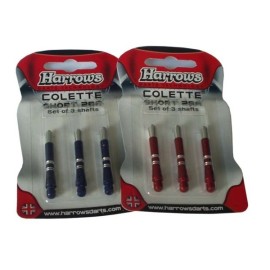 Násadky "HARROWS" COLLETTE S. Kvalitní násadky pro závodní hráče. Délka násadky je 4 cm, hmotnost 1,7 g. Materiál je zušlechtěný Alu s barevným potahem. Různé barvy.Obrázek je pouze ilustrativní a pro představu, nemusí vyobrazovat aktuálně dostupnou variantu.