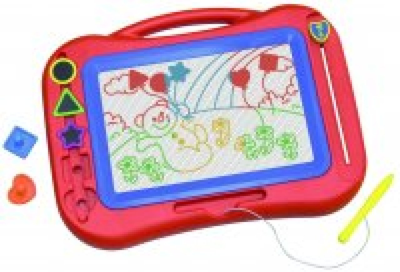 Magnetická mazací tabulka v krásném barevném provedení je kreativní pomůcka pro kreslení. A pokud se dětem obrázek nebude líbit, v mžiku ho smažou pomocí mazací lišty. Děti si zábavnou formou zlepšují motoriku a rozvíjí si kreativitu. Součástí balení je tužka na tabulku a pět razítek. Vhodné od 3 let.