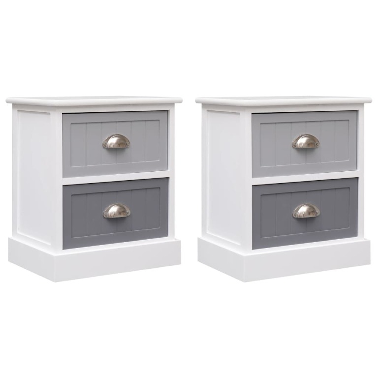 Vneste do svého bydlení elegantní kouzlo s našimi vintage nočními stolky! Můžete je také postavit k pohovce jako telefonní a odkládací stolky! 2 zásuvky těchto kompaktních skříněk se hladce vysouvají i zasouvají a najdete v nich spoustu prostoru pro uspořádání menších předmětů, které chcete mít na dosah ruky. Skříňky jsou zhotovené z MDF a masivního dřeva pavlovnie, jsou proto výjimečně odolné vůči opotřebení a snadno se čistí. Balení obsahuje 2 noční stolky.