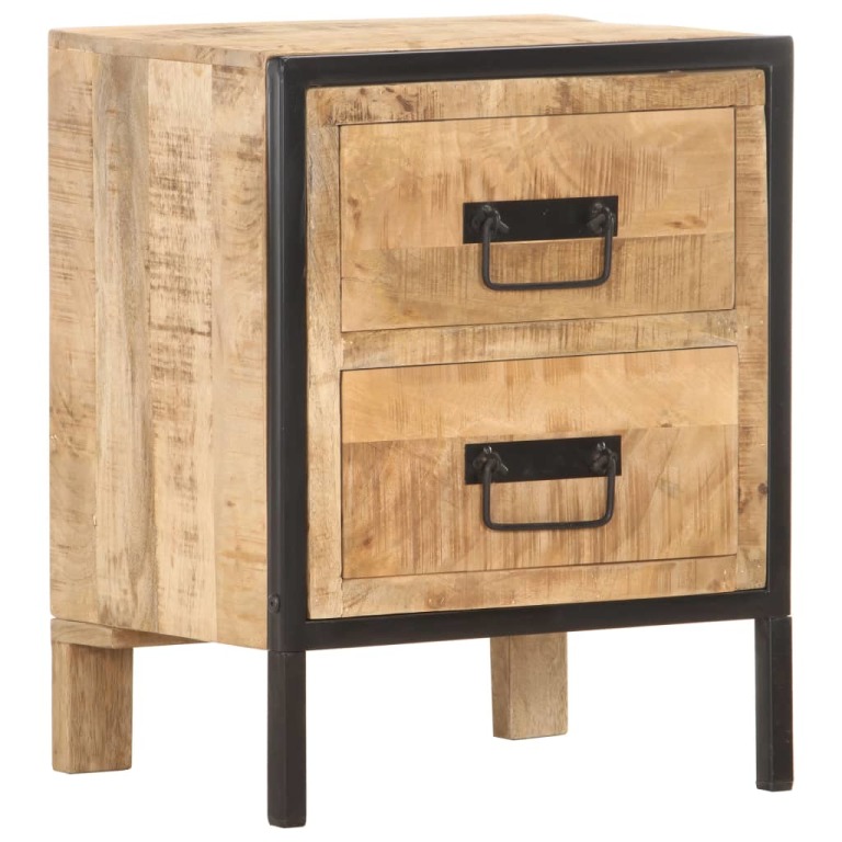 Tento noční stolek z masivního mangovníkového dřeva vnese do vašeho interiéru industriální šarm. Uplatnit ho můžete také jako odkládací skříňku či stolek nebo jako přístavný stolek. Noční stolek má robustní horní desku z tvrdého dřeva, na kterou si můžete postavit lampičku na čtení, budík nebo cokoliv jiného, co by se vám hodilo mít hned u postele. Dvě zásuvky vám poskytnou spoustu místa pro přehledné uložení nejrůznějších menších předmětů, které chcete mít na dosah ruky. Noční stolek má černě zvýrazněné hrany a okamžitě oživí a zkrášlí zařízení vaší ložnice. Důležité upozornění: Barvy a kresba dřeva se mohou lišit kus od kusu, a proto je každý z našich stolků k posteli jedinečný. Výběr kusu k dodání je náhodný.