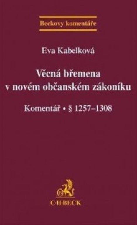 Nový občanský zákoník věnuje právní úpravě věcných břemen více prostoru než dosavadní právní úprava. Nová ustanovení přinášejí rozdělení věcných břemen na služebnosti a reálná břemena, zavádějí je do českého právního řádu znovu jako samostatné pojmy. Charakterizují také některé pozemkové a osobní služebnosti a upravují klasické služebnosti – služebnosti stezky, cesty, práva požívání nebo práva užívacího. Poprvé jsou v občanském právu upraveny nové typy služebností – služebnost inženýrské sítě a služebnost rozlivu. Nový občanský zákoník zakotvuje rovněž reálné břemeno včetně transformace práva z reálného břemene na oprávnění na peněžitou náhradu. Zavádí možnost rozšíření osobní služebnosti i na dědice. Předkládaná publikace poslouží nejen všem zájemcům o hlubší vhled do nového kodexu, ale hlavně jako praktická pomůcka pro orientaci v nové úpravě především všem, kdo věcná břemena i v letech minulých zřizovali nebo byli jejich "poživateli" či je zřizovat nebo "požívat" budou. Komentář uvítají advokáti, vlastníci a správci nemovitostí, podnikatelé v energetice nebo vodohospodářství.