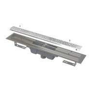 Podlahový žľab s okrajom pre plný rošt 1050 mm podlahový žľab z nerezovej ocele (zušľachtenie materiálu morením a pasiváciou, elektrochemické preleštenie) pre vkladanie plných roštov - nerez, kalené sklo, syntetický kameň, rošt pre vloženie dlažby a hranolový rošt stavebná výška od 95 mm výškovo ...