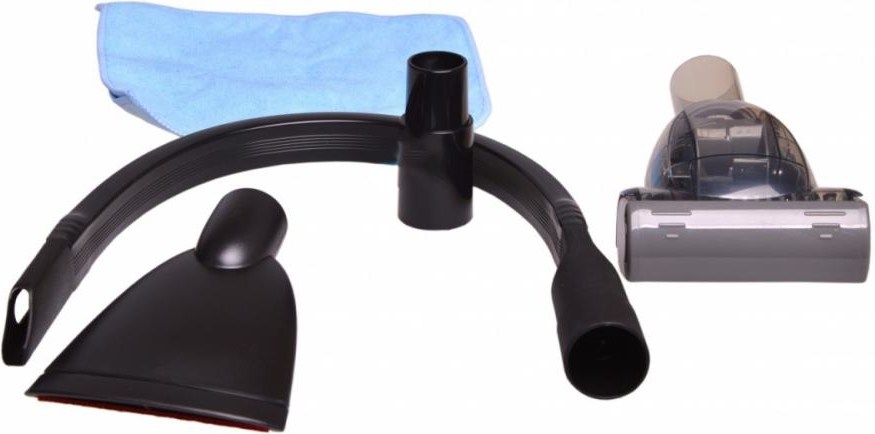 Menalux MKit01 Sada minihubic pro čistění automobilu pro vysavač Praktický set přídavných hubice a turbokartáče pro vysávání automobilu. Sada k vysavačům obsahuje 4 užitečné nástroje pro jednodušší péči o auto - utěrku z mikrofáze - malý turbokartáč - úzký nástavec a štěrbinovou hubici. Hubice pasují ke všem vysavačům s průměrem trubky 32 a 35 mm, kterých je na našem trhu většina. Výrobce Electrolux pod svou značkou Menalux. 1 utěrka z mikrovlákna pro dokonalé vyčištění plastových dílů a čelních skel1 malá turbo hubice pro čalounění, možnost dolního a horního čištění1 úzká dlouhá flexi hubice1 široká plochá hubice s lapači nečistot, účelná pro vysávání autosedaček a polstrů1 redukce 32/35 mm 9001660712 PNC Vzduchový rotační turbokartáč je poháněn vzduchem proudícím do vysavače, který roztáčí vzduchovou turbínku – takže se kartáče uvnitř hubice při provozu točí. Tím dojde k pročesávání kobercových vláken a efektivnímu odstranění drobečků, nití, zašlapaných nečistot, vlasů, chlupů zvířat - umožňuje hloubkové čistění koberců, které zkracuje čas vysávání. Turbokartáč obecně není vhodný na koberce s dlouhým vlasem (více než 1,5 cm) nebo s třásněmi a střapci, mohlo by dojít k namotání těchto dlouhých vláken na rotující kartáč v turbohubici. Pro optimální funkci turbokartáče je doporučeno jeho použití s vysavači s výkonem ne nižším než je 1000W. Vaše auto bude při použití této sady k vysavači 32 a 35 mm jako nové Díky šikovným nástavcům Electrolux/Menalux KIT01/KIT09 se dostanete snadněji do každého kouta, záhybu, či spáry. I velmi obtížně dostupná místa v autě nejsou pro nástavce překážkou - že jich v autě je spousta. Zbavíte se poletujícího prachu - tím minimalizujete výskyt alergických reakcí. Navíc prach přitahuje vlhkost, která interiéru vozidla také nesvědčí. Na plastové části a skla je skvělá mikrovláknenná utěrka - tzv. mikrofáze. Jde o umělé vlákno, které snadno absorbuje nečistotu, bez nutnosti použít na čistění různých povrchů chemikálie. Speciální hubice na zvířecí chlupy, vlasy, vlákna pomůže vyčistit sedačky a polstrování, stejně tak ji využijete doma například na čalouněný nábytek. Součástí sady je pružná hadice se zakončením jako plochá štěrbinová hubice, která prodlouží možnost účinného vysávání a adaptér pro připojení kruhových trubic 32/35 mm.