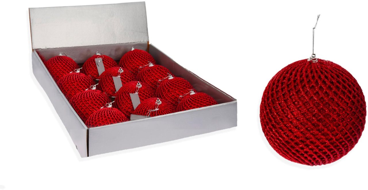 Laalu Súprava 12ks ozdôb: Ozdoby so sieťovinou červené 10cm
