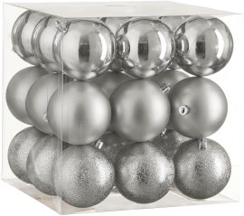 Laalu Súprava 27ks ozdôb: Ozdoby guľaté strieborné mix 8cm