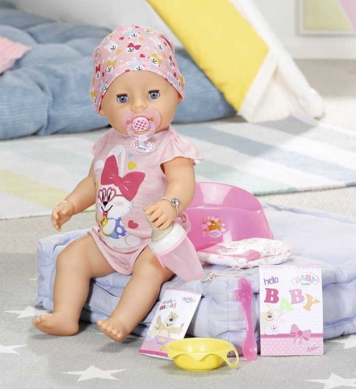 Panenka pro holky, vhodné od 3 let Malé holčičky si rády hrají na maminky. S interaktivní panenkou BABY born, která je vybavena spoustou užitečných doplňků, si užijí mnoho zábavy a ještě se něčemu přiučí. Děti s ní mohou spát v postýlce a starat se o ni jako o opravdové miminko. Tato panenka miluje svůj dudlíček, díky kterému snadno usne. Stačí s ním pootočit v pusince miminka a hned zavírá oči. Nohy a ruce panenky jsou pohyblivé a má příjemně měkké tělíčko. Deset životních funkcí, kterými BABY born disponuje, fungují i bez použití baterií. Klíčové vlastnosti panenky BABY born s kouzelným dudlíkem, holčičkaRoztomilá a detailně zpracovaná panenka od společnosti Zapf CreationSoučástí je i mnoho potřebných doplňků, jako je nočník, kašička a lahev Panenka BABY born má pohyblivé končetiny a měkké tělíčko Kouzelný dudlíček, díky kterému panenka snadno usne Deset životních funkcíFunguje i bez bateriíUčí holčičky mateřské péči a.