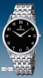 Pánské hodinky vodotěsnost 3 ATM Kvalitní hodinky na sebe vždy upoutají pozornost, a proto by měly být doplňkem každého moderního muže. Společnost Festina jistě patří mezi nejkvalitnější a nejznámější výrobce luxusních hodinek a jejími výrobky se pyšní řady mužů a žen na celém světě. Hodinky společnosti Festina jsou vyráběny vždy z těch nejkvalitnějších materiálů a svou kvalitou a precizností zpracování jistě nadchnou každého z vás.Klíčové vlastnostiMinerální sklíčkoDatumovkaQuartz strojekPerfektní zpracováníElegantní designKvalita a vzhledTyto elegantní hodinky jsou vyrobeny z kombinace jakostní leštěné a matné oceli. Pod minerálním sklíčkem ukrývají ciferník černé barvy. Časové údaje zastupují hodinová a minutová ručička, které doplňuje datumovka. O řízení všech analogových ukazatelů se stará precizní Quartzový strojek. Připevnění na zápěstí zajišťuje pohodlný řemínek z ušlechtilé oceli. Deklarovaná laboratorní vodotěsnost je 3 atmosfér, což v praxi znamená, že hodinky jsou odolné.