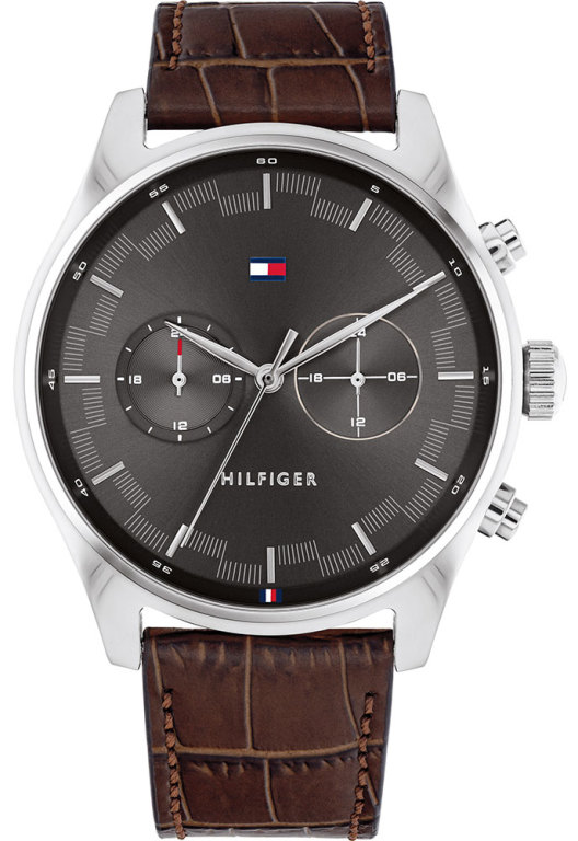 Popis: Určení (pro koho): Pánské Značka: Tommy Hilfiger Styl: Sportovní Vodotěsnost: 50 m Barva řemínku: Hnědá Materiál řemínku: Kůže Barva ciferníku: Černá Ciferník: Analogový Strojek: Quartz- baterie Sklíčko: Minerální Tělo/pouzdro: Ocel Barva pouzdra: Stříbrná Tvar hodinek: kulaté Šířka řemínku: 22 ...viac