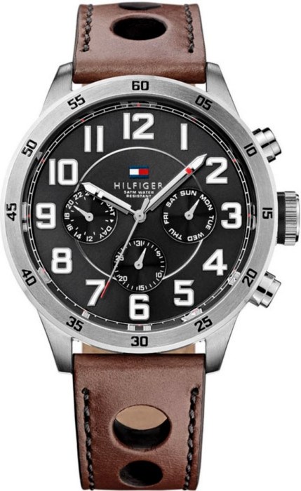 Štýlovým a pritom originálnym doplnkom pre každého muža budú tieto hodinky od Tommyho Hilfigera. Klasický ciferník v nerezovom puzdre dostal efektné farebné spracovanie - strieborné okružie sa vydarene dopĺňa s čiernym pozadím. Na prvý pohľad zaujmú masívnejšie biele číslice a širšie strieborné ručičky, zaujímavým doplnkom je nenápadný červený štvorček, ktorý vydarene korešponduje s logom značky. Skutočnou špecialitkou sú ale netradične vyrazené dierky na koženom náramku. .
