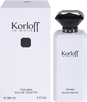 Pánska toaletná voda – s rozprašovačom.Pánska toaletná voda KORLOFF In White s objemom 88 ml odhaľuje váš vnútorný svet a odkrýva prirodzene elegantného a slobodomyseľného muža. Okúste nadčasovú vôňu pre skutočných gentlemanov. Podmanivé tóny bergamotu, kardamonu a lístkov fialky vystrieda na vašej pokožke pikantná kvetinová vôňa vo zvodnej kombinácii kvetu afrického pomarančovníka, levandule a lúčnej šalvie. Harmonické kúzlo je v závere doladené opojnou hrejivou vôňou cédra, kašmíru, pižma a fazule tonka. Toaletná voda KORLOFF In White s rozprašovačom je dokonalým doplnkom sebavedomého muža na každom jeho kroku. Kľúčové vlastnosti pánskej toaletnej vody KORLOFF In WhiteKORLOFF In White je ideálna vôňa pre moderných mužov túžiacich po dobrodružstveToaletná voda s jemnou kvetinovo-drevitou arómouElegantný biely flakón s rozprašovačomZloženie:Hlava: bergamot, kardamom, lístky fialkySrdce: kvet afrického pomarančovníka, levanduľa, lúčna.