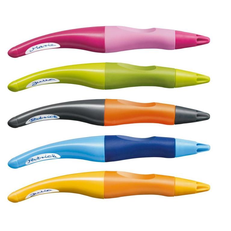 [pro praváky],, * první roller v ergonomickém tvaru, ve variantě zvlášť pro leváky a praváky, * moderní alternativa plnícího pera, * tvarovaný úchop z neklouzavého materiálu, * jedinečný design, * nový hrot s každou novou náplní, velmi jednoduchá výměna, * ZMIZÍKOVATELNÝ MODRÝ INKOUST, * balení obsahuje 1 náplň a štítek na jméno, * šíře stopy 0,5 mm,, Uvolněné držení napomáhá proti předčasné únavě svalstva ruky a bolestem ruky při psaní (případné bolesti zad a hlavy). Díky kuličce v náplni lehce klouže po papíře, lehká a, komfortní manipulace.,, [0,5 mm],, Náhradní náplň Stabilo EASYoriginal. K vymazání inkoustové stopy doporučujeme zmizík Stabilo ColorKilla.,, Technologie rolleru umožňuje školákům psaní bez škrábání na papíře. Nedělá kaňky, při psaní lehce klouže a i výměna náplně je zcela jednoduchá a bez špinavých rukou., , STABILO EASYoriginal intuitivním způsobem NAPOMÁHÁ SPRÁVNÉMU DRŽENÍ, je proto VHODNÝ JAK PRO ZAČÍNAJÍCÍ DĚTI, TAK I PRO STARŠÍ ŠKOLÁKY. Jeho úchopová zóna je vytvarovaná, zvlášť PRO PRAVÁKY a PRO LEVÁKY., , Školákům, kteří se psaním začínají a potřebuji širší stopu, je určena náplň s šíří stopy Medium (0,5 mm). Pokud by stopa byla tenká, začali by na psací potřebu tlačit, a tím, se zbytečně stresovali. Dokoupit je možné i náplň s užší šířkou stopy Fine (0,3 mm), která je doporučována starším školákům zhruba od 3. třídy.