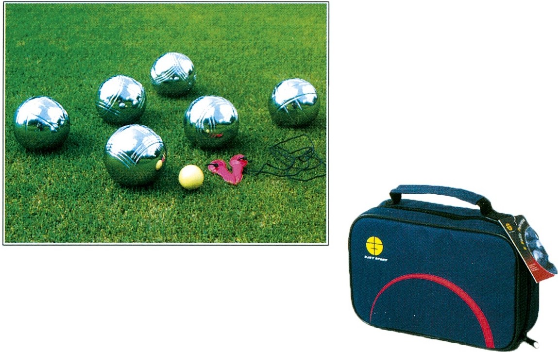 Petanque je outdorová spoločenská hra vhodná prevažne na leto na piesočné pláže či trávnaté povrchy. Herná taška z nylonového materiálu obsahuje sadu 6 kovových gulí pre 2-3 hráčov, ďalej cieľovú guličku (tzv. prasiatko) a meradlo. Petanquové gule sú vyrobené z kvalitného materiálu, ktorý je vysoko odolný proti oderu a korózii, takže možno hrať skoro na všetkých typoch povrchov. Technický popis: 6 kovových gúľ materiál: kov, chrómovaný (odolný proti korózii a oderu) cieľová gulička (prasiatko) meradlo nepromokavý kufrík hmotnosť balenia: 4 kg.