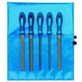 Kvalitné pilníky pre priemysel a obchod v ochrannom a klimaticky odolnom PVC zrolovateľnom vrecku na uloženie v kufri na náradie alebo na pracovnom stole. Každý pilník má ergonomickú rukoväť na pilníky. Tento text bol preložený strojovo. Stále vysoká miera úberu od špičky po špicu·Dlhá životnosť·S priečnym rezom 2 na univerzálne hrubovacie a dokončovacie práce·Tento text bol preložený strojovo. Päť dielenských zakladačov, každý po 1 ks: plochý (1112), (š xv) 30,0 x 6,5 mm trojuholníkový (1132), (š) 18,0 mm štvorcový (1142), (š xv) 12,0 x 12,0 mm polkruhový hrot (1152SP), (š xv) 30,0 x 8,5 mm okrúhly (1162), (priem.) 12,0 mm Dodávané s ergonomickými rukoväťami na pilníky v PVC rolovateľnom vrecku.