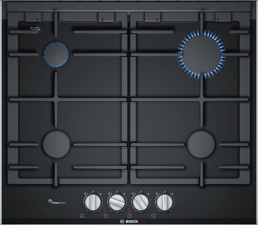 Serie | 8 Plynová varná deska, 60 cm, Černá PRP6A6D70 Plynová varná deska na sklokeramickém povrchu s funkcí FlameSelect: zaručí perfektní výsledky vaření díky preciznímu nastavení stupně výkonu plynového hořáku v rozsahu 1 až 9 stupňů.