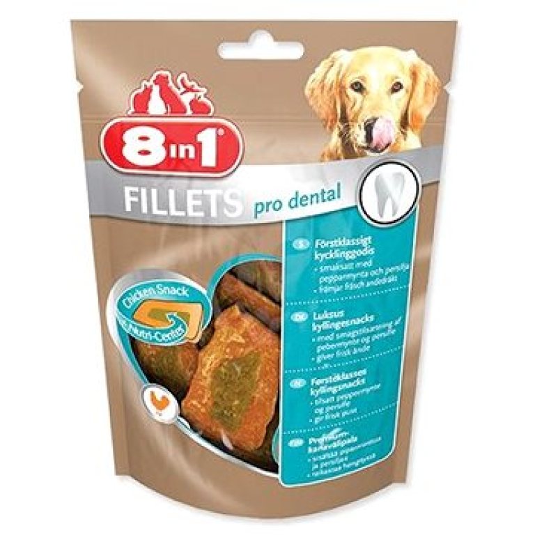 Lahodné kuřecí kousky s výživnou náplní pro malé a střední psy, doplňkové krmivo. Fillets Pro Breath jsou s příchutí máty a petrželky, které podporují svěží dech a mají jen 4,5% tuku. Krmný návod: podávejte jako pochoutku či odměnu. Složení: maso a živočišné produkty (92% kuřecí maso), vedlejší produkty rostlinného původu (0,2% máta peprná, 0,2% petržel), minerální látky. Jakostní znaky: proteiny 58%, vlhkost 14%, tuky 4,5%, popeloviny 4%, vláknina 1%.