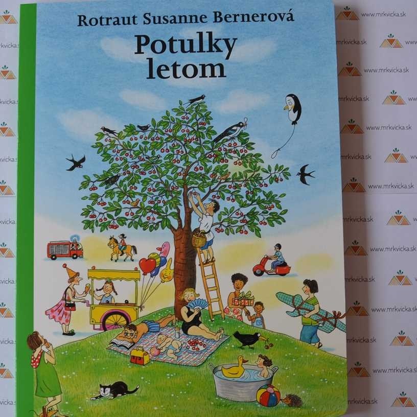 Kto spoznal aspoň jednu z piatich kníh zo série "Potuliek", bude ich chcieť mať doma všetky! Nemecká ilustrátorka a autorka detských kníh Rotraut Susanne Bernerová spracovala do knižnej podoby na prvý pohľad jednoduchý, no geniálny nápad. Jej Potulky (jarou, letom, jeseňou, zimou a nocou) rozprávajú nekonečné variácie príbehov bez slov. Autorka pri ich vytvorení využila len obrázky, prostredníctvom ktorých dieťa spoznáva obyvateľov mestečka a ich životné epizódy. V knihe Potulky letom sa stretávame so známymi i novými postavičkami uprostred horúceho leta. Dozrieva ovocie a napriek prázdninám je v meste neobyčajne rušno. Tu sa začína ozajstné dobrodružstvo pre malého čitateľa. Obrázky ho vtiahnu do mestečka, ktoré je spolu s ulicami, domami, škôlkou či tržnicou jediným statickým prvkom knihy. Veci, zvieratá i ľudia sa menia a putujú zo strany na stranu, aby žili svoj príbeh. A práve ten sa dá čítať viacerými spôsobmi. Je len na dieťati a rodičovi, ktorý spôsob si vyberie. Budete sledovať jednu postavu alebo sa zameriate na detaily? Zodpoviete otázku, čo sa skrýva v netradične zabalenom balíku? Kúpi si Anna nové šaty? A komu nesie Adam kyticu ruží? Zadná strana ponúka akúsi nápovedu o postavách, ktoré v Potulkách vystupujú. Deti si pomocou veľkoformátového leporela (výška 40 cm) zachytávajúceho postavičky pri rôznych činnostiach rozvíjajú slovnú zásobu (najmä slovesá), a trénujú pamäť a koncentráciu na detail spájaním súvislostí pri pozorovaní viacerých postáv a ich vývoja v knihe. Kniha perfektne rozvíja fantáziiu - dieťa sa stáva tvorcom nových a nových príbehov, pretože pri Potulkách letom príbeh nepočúva, ale sám si ho spolu s maminou či oteckom vytvára. Potulky letom prinesú vzrušujúcu zábavu nielen pre deti, ale určite i pre dospelých. Leporelo je ideálne od 18+ mesiacov, keď majú deti zvládnuté základné slová.