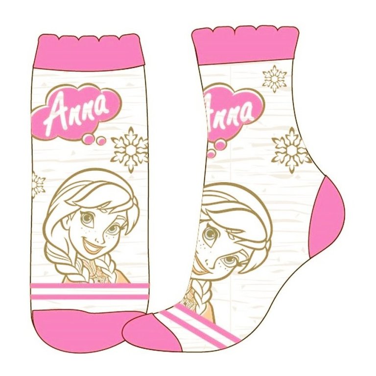 Dětské ponožky Ledové království - Frozen. Tyto ponožky nabízíme ve dvou barevných provedeních - růžovo / šedé s obrázkem princezny Anny, nebo tyrkysovo / bílé s obrázkem princezny Elsy - viz. výběr velikosti a barvy níže. Tyto ponožky získaly mezinárodní certifikát OEKO-TEX STANDARD 100, který zaručuje rozměrovou a barevnou stálost materiálu i to, že výrobek neobsahuje škodlivé látky. Pokud si i Vaše dítě oblíbilo princezny z Ledového království, prohlédněte si naši nabídku doplňků do dětských pokojíčků, doplňků oblečení a školních potřeb s motivem Ledové království.