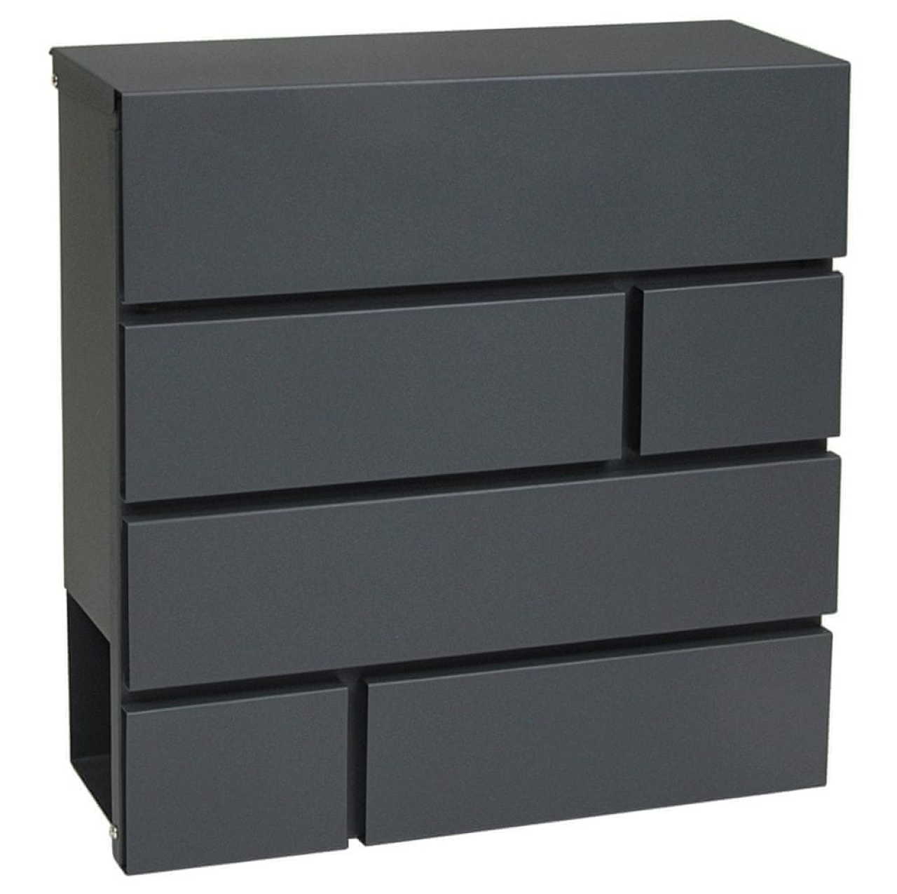 Poštovní schránka, která zaujme svou nenápadností. Složení z oceli vám dlouho vydrží i při náhlých změnách počasí. V přední části ji lze celou otevřít pro sběr příchozí korespondence. Richter BK.932.AM po stránce funkčnosti i vzhledu využívá netradičního tvaru, který velmi snadno zapadne. V balení s montážním materiálem a 2 ks klíčů.