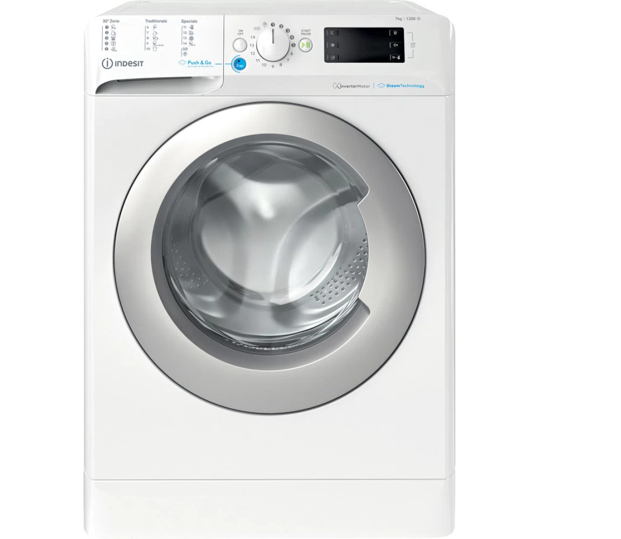 Pračka s předním plněním Indesit BWSE 71295X WSV Volně stojící pračka s předním plněním od firmy Indesit vám zajistí, že vaše prádlo bude znovu krásné a čisté. Během jednoho cyklu programu ECO spotřebuje 46 l vody. Pohodlně pojme až 7 kg oblečení. Snadné ovládání zajistí digitální displej. Je zařazena do energetické třídy B. Se vším se popasuje Pračka disponuje řadou přívětivých funkcí, které se popasují s nejedním problémem. Technologie Push&Go pohodlně odstraní až 20 nejběžnějších skvrn a to za pouhých 45 minut. Speciální program na přikrývky se zase popere se špínou, aniž by narušil rovnoměrné rozložení jejich náplní. A aby bylo dobře postaráno i o pračku samotnou, cyklus automatického čištění ji bez obav pohodlně umyje, aniž byste si zašpinili svoje ruce. Šetří vodu i peněženku Disponuje invertorovým motorem, který pračce zajistí nejen skvělý výkon, ale i úsporu energie. Té ještě můžete docílit správně zvoleným programem. Se 30° zónou pohodlně vypere prádlo při teplotě 30 °C se stejnou efektivitou jako při 40 °C. Adekvátní spotřebu vody má pak na starosti cyklus Water Balance Plus, který podle míry naplnění bubnu sám určí, kolik vody je zapotřebí. Lze tak ušetřit až 70 % vody a 50 % energie. Dobrý pomocník Chcete přijít z práce a mít dopráno? S pomocí odloženého startu si pračku pohodlně nastavíte tak, aby se spustila v momentě, kdy budete potřebovat. O nic se nebudete muset starat. A pokud máte malé děti, oceníte funkci zámku. Nestane se tedy, že by vaše ratolesti při svých objevných cestách pomačkali lákavá tlačítka a změnili tak vaše nastavení.