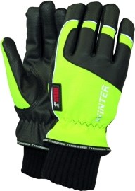 Zimné šité rukavcie z pružného nylonového materiálu v chrbtovej časti a vrchnej časti palca, refl exné doplnky na chrbte a prstoch, pružná pletená manžeta, dlaň a krytie nechtov polyester povrstvený reliéfnym PU pre lepší protišmyk. Podšívka 100 % Thinsulate 40 g.