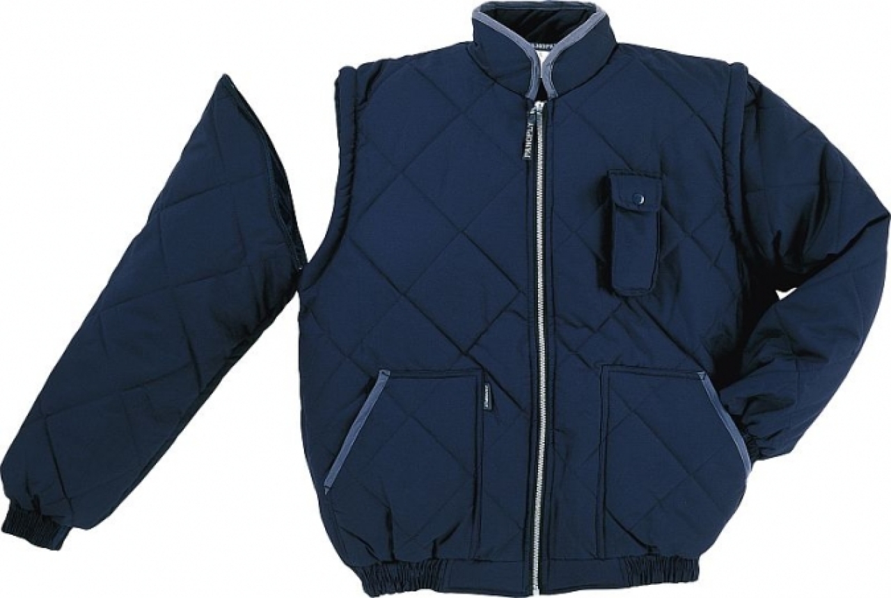 Pracovní ochranná zateplená bunda NEW DELTA do pasu, 4 kapsy, elastické stažení v pase, materiál polyester /bavlna, prošívaná podšívka z polyesteru Taffeta, lehce zateplená, rukávy s nápletovými konci odepínatelné v rameni, šíkmé kapsy u pasu, kapsa na mobil na prsou, stojáček, barva tmavě modrá, velikost XXL.