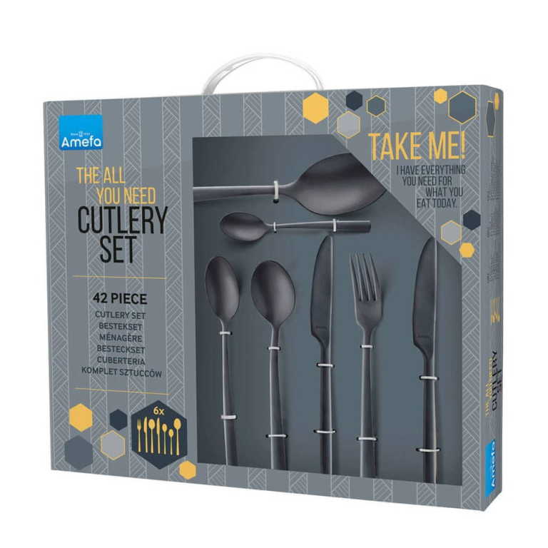 Příbory Manille All You Need od značky Amefa ve zlaté barvě budou ozdobou jídelního stolu. Tyto příbory oslní každého, kdo ocení moderní pojetí stolování jako umění. Zhotovené jsou z kvalitní nerezové oceli. V sadě najdete klasickou lžíci, vidličku, nůž i lžičku spolu se steakovým nožem, lžící na zeleninu a lžičku na latté, to vše po šesti kusech.