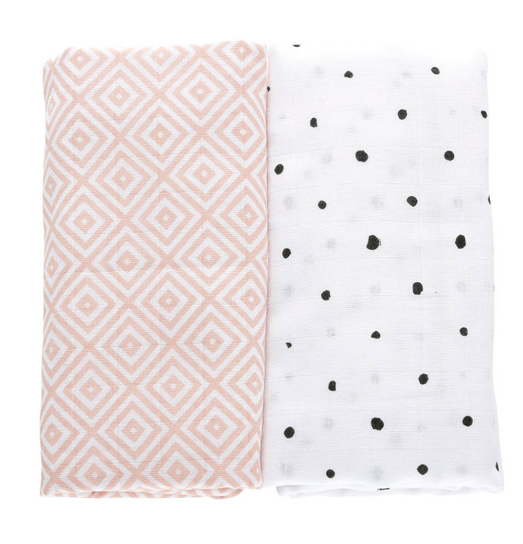 Přikrývka mušelínová 2ks Pink Squares 100x120cm Multifunkční mušelínová přikrývka / plenka je extrémně měkká na dotek, neobvykle vzdušná a lze ji použít jako deku, zavinovačku, podložku na hraní nebo přebalování, clonu proti slunci, na odříhnutí nebo při kojení.