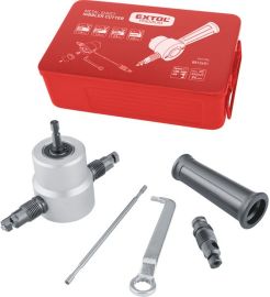 Nástavec na vrtačku pro stříhání plechu Extol Premium 8813651 oboustranný nástavec do vrtačky pro stříhání plechu max. tloušťka plechu, kterou nástavec dovoluje stříhat: 2 mm upínání do vrtačky: šestihran 1/4" doporučené pracovní otáčky pro optimální výkon: 1500 - 3000 ot./min. minimální poloměr stříhaného ...viac