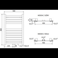 Specifikace výrobku: Výška: 1500 mm Šířka: 500 mm Hloubka: 54 mm Vzdálenost připojení: 45 cm Barva: Černá RAL 9005 Materiál: Ocel Váha: 11,53 kg Reakce na oheň: A1 Pracovní teplota: max 95 °C Maximální pracovní tlak: 0,6 Mpa Topný výkon: - 75/65/20 °C - 680 W Spojení: - 4xG ½″ z vrchní části a ze spodní ...