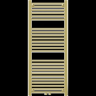 Specifikace výrobku: Výška: 1200 mm Šířka: 500 mm Hloubka: 40 mm Vzdálenost připojení: - 45 cm (boční) nebo 5 cm (prostřední) Barva: Zlatá Materiál: Ocel Váha: 8,23 kg Reakce na oheň: A1 Pracovní teplota: max 95 °C Maximální pracovní tlak: 0,6 Mpa Topný výkon: - 75/65/20 °C - 417 W Spojení: - 2xG ½″ ...