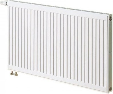 Kermi doskový radiátor V 33 500/1400 FTV330501401R1K.Therm X2 Profil-V 33.Doskové vykurovacie teleso so zabudovaným ventilom a spodným pripojením.Vykurovacie teleso třídeskové, tri rozšírené prestupné plochy.Profilované doskové vykurovacie teleso s prednostne vykurovanú čelnou doskou - systém Therm X2, vstavanou ventilovou vložkou a spodným pripojením. Štandardne je dodávané pravej spodnej pripojenie, na objednávku je možné dodať aj ľavé. Teleso je vyrobené z oceľového plechu hr. 1,25 mm. Typy 11-33 majú bočné a horné zakrytovanie. Na zadnej strane sú privarené upevňovacie lamely - 4 ks pre dĺžky do 1600 mm (vrátane), 6 ks pre dĺžku 1800 mm a väčšia. Ventilová vložka V3K je z výroby prednastavená podľa menovitého výkonu.Súčasťou dodávky telesa je upevňovacia sada (závrtné konzoly + príslušenstvo).Materiál: oceľový plech St 12.03, hr. 1,25 mm.Vstavaný ventil: ventilová vložka V3K.Hlavica ventilu: štandardné M30x1.5.Najvyšší prípustný prevádzkový pretlak: 1.0 MPa.Najvyššia prípustná prevádzková teplota: 110 ° C.Pripojovací závit: 2 x G3 / 4 '''' vonkajšie.Spôsob pripojenia: spodné pravé.Súčiniteľ odporu: ?T = 2,500 (DN 15).Teplotný exponent n = 1,2962.Teplotný spád: 75/65/20 ° C.Hmotnosť telesa = 43,100 kg / m.Vodný objem = 8,100 l / m.Prestupný plocha = 9,180 m2 / m.Hĺbka B = 155 mm.Pripojovacie rozteč h = 50 mm.Výška: 500 mm.Dĺžka: 1400 mm.Tepelný výkon: 2722 W.Vodný objem: 11,3 l.ilustračné foto.