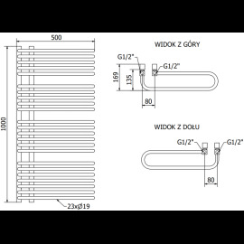 Specifikace výrobku: Výška: 1000 mm Šířka: 500 mm Hloubka: 135 mm Vzdálenost připojení: 8 cm Barva: Černá RAL 9005 Materiál: Ocel Váha: 13,91 kg Reakce na oheň: A1 Pracovní teplota: max 95 °C Maximální pracovní tlak: 0,6 Mpa Topný výkon: - 75/65/20 °C - 809 W Spojení: - 4xG ½″ z vrchní části a ze spodní části z pravé nebo levé strany Možnost instalace ohřívače Vysoká kvalita, odolný lakovaný povrch odolný vůči korozi V sadě: pověšení, montáží sada, záslepky do otvoru a odvzdušňovací ventil