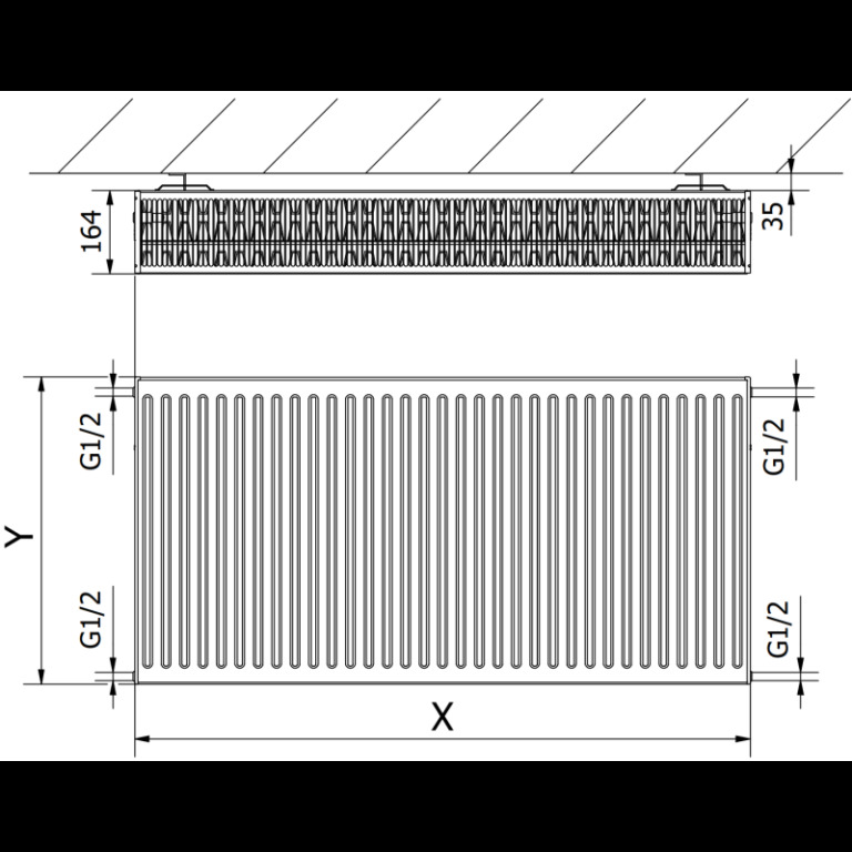Specifikace výrobku: Výška: 600 mm Šířka: 600 mm Hloubka: 163 mm Vzdálenost připojení: 55 cm Vzdálenost vertikálních vodních kanálků: 33,3 mm Barva: Bílá RAL 9016 Materiál: Ocel Váha: 28,46 kg Pracovní teplota: max 110 °C Maximální pracovní tlak: 10 bar Maximální zkušební tlak: 13 bar Topný výkon: - 55/45/20 °C 724 W - 75/65/20 °C 1401 W - 90/70/20 °C 1772 W Spojení: - 4xG ½″ boční Vysoké kvality, odolný lakovaný povrch - DIN 99500 Má boční kryt a snímatelný vrchní kryt V sadě: pověšení, montáží sada, záslepky do otvoru a odvzdušňovací ventil