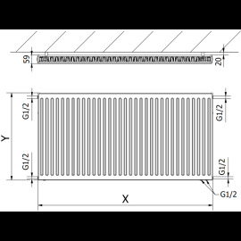 Specifikace výrobku: Výška: 500 mm Šířka: 1400 mm Hloubka: 59 mm Vzdálenost připojení: 5 cm Vzdálenost vertikálních vodních kanálků: 33,3 mm Barva: Bílá RAL 9016 Materiál: Ocel Váha: 18,35 kg Pracovní teplota: max 110 °C Maximální pracovní tlak: 10 bar Maximální zkušební tlak: 13 bar Topný výkon: - 55/45/20 °C 583 W - 75/65/20 °C 1115 W - 90/70/20 °C 1405 W Spojení: - 2xG ½″ ze spodu z pravé - 4xG ½″ boční Vysoké kvality, odolný lakovaný povrch - DIN 99500 Má boční kryt a snímatelný vrchní kryt V sadě: pověšení, montáží sada, záslepky do otvoru, odvzdušňovací ventil a ventilová vložka