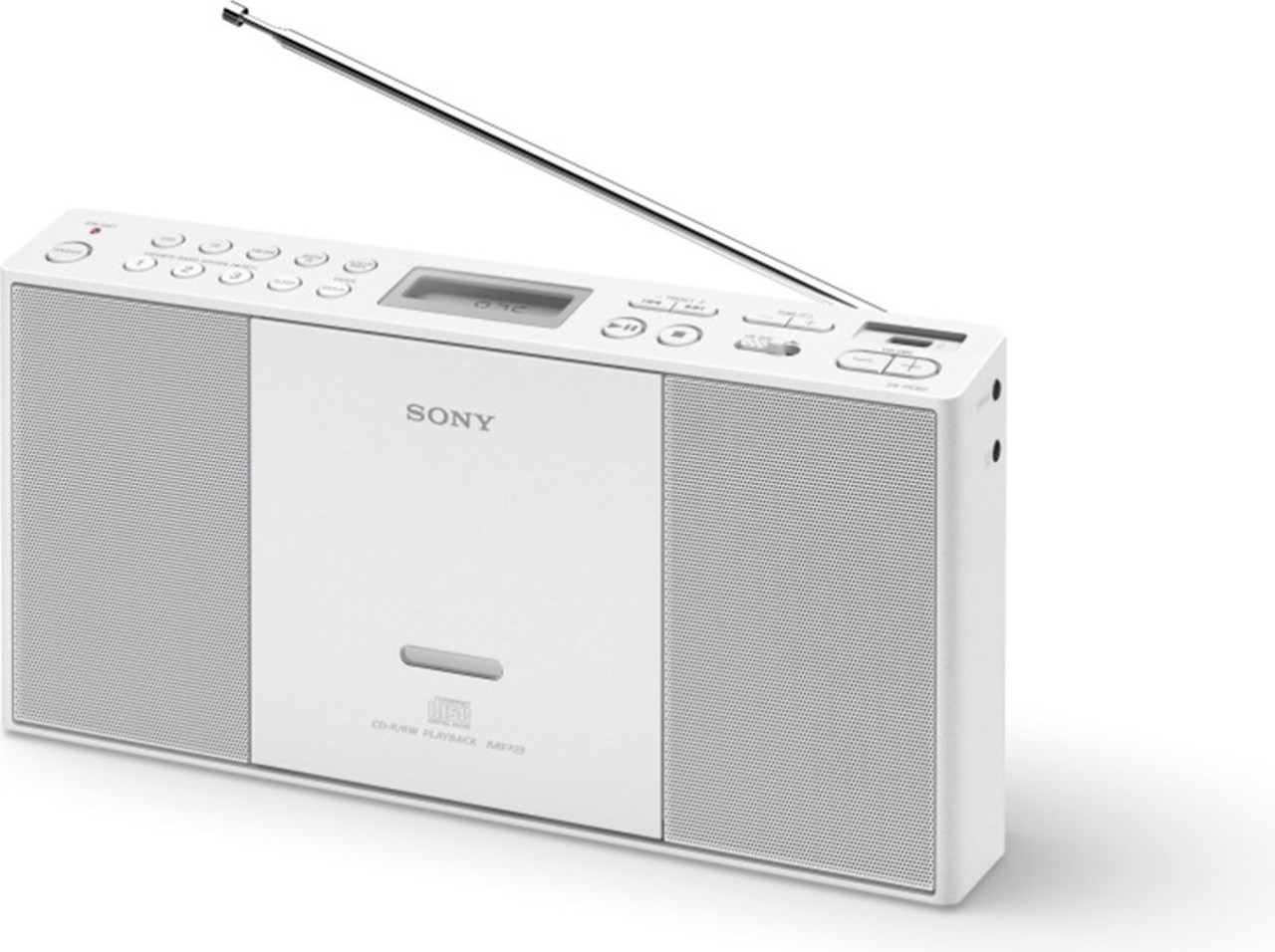 Se Sony ZS-PE60 Boombox můžete vzít své oblíbené skladby kamkoliv se vám zlíbí. Kromě klasického síťového napájení můžete totiž využít i bateriové napájení, které slibuje výdrž až 26 hodin při používání FM tuneru nebo až 9 hodin při přehrávání CD. Dopřejte si kvalitní hudební zážitek se stylovým rádiem vybaveným CD, USB a digitálním FM tunerem. Se Sony ZS-PE60 Boombox můžete vzít své oblíbené skladby kamkoliv se vám zlíbí. Bateriové napájení slibuje výdrž až 26 hodin při používání FM tuneru nebo až 9 hodin při přehrávání CD. Kromě nádherného designu vás překvapí i také svým čistým a jasným zvukem. Klíčové vlastnosti časovač vypnutí automatické ladění až 30 předvoleb LCD displej USB port výstup na sluchátka bateriový provoz výkon 2× 1,1 W Mnoho funkcí CD přehrávač s vertikálním vkládáním disků přehrává CD-R/RW disky s podporou mp3 a praktickými funkcemi jako např. náhodné přehrávání či programování. FM tuner umožňuje uložit až 30 rozhlasových stanic, včetně výběru tří oblíbených pomocí jednoho dotyku. Samozřejmostí je již dnes nepostradatelný USB konektor pro přehrávání hudby z externího úložiště (flashdisk). Nechybí ani audio vstup pro připojení MP3 přehrávačů či sluchátkový výstup. Užitečný je také LCD displej zobrazující aktuální funkce a stav. Doplňující informace: Rozměry: 318 × 156 × 70 mm Hmotnost: 1,4 kg bez baterií 1,6 kg s bateriemi Podporované formáty: CD-R/RW, CDDA, Formát mp3, WMA Tuner: FM: 87,5–108,0 MHz, AM: 531–1602 kHz FM: výsuvná anténa, AM: vestavěná anténa předvolby stanic: 30 (FM 20 / AM 10) Napájení: výdrž baterií: FM: cca 26 hodin, přehrávání disků CD: cca 9 hodin Výstupní výkon: 2× 1,1 W Spotřeba energie: AC 10 W.