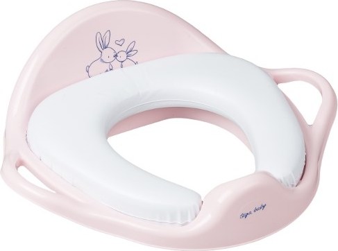 Detské farebné sedadlo na WC mäkké s obrázkom zajačika. Vyrobené z kvalitného plastového materiálu. Je ľahko umývateľné a vďaka svojmu tvaru zaručuje Vášmu dieťaťu bezpečie a pohodlie. Zvýšená predná časť zabraňuje úniku moču. Má plastové úchyty a sedacia časť je mäkká a potiahnutá PVC. Ideálne pre deti, ktoré sa učia samé chodiť na záchod. Sedí ku väčšine záchodových dosiek. Rozmery: cca 38x32 cm. Vhodné pre deti od 18 m, do 25 kg.
